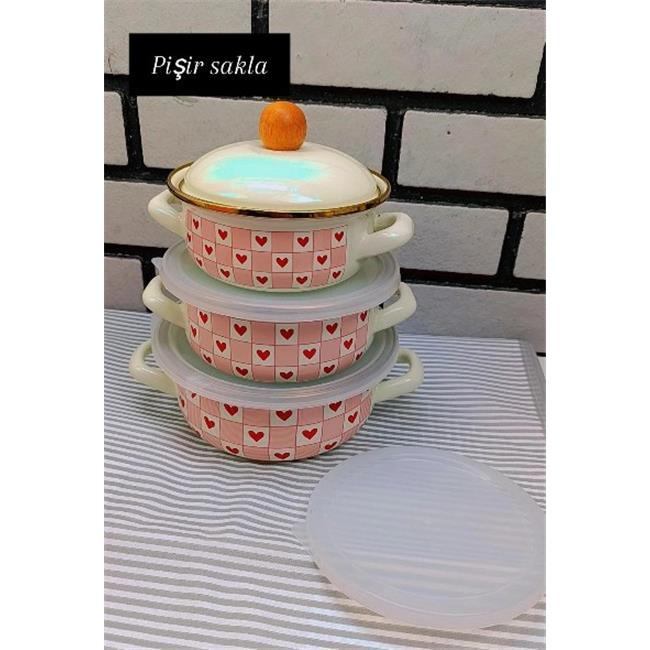 Alev Emaye Kalpli Pişirme Tencere & Saklama Kabı Seti 3lü -Renkli-