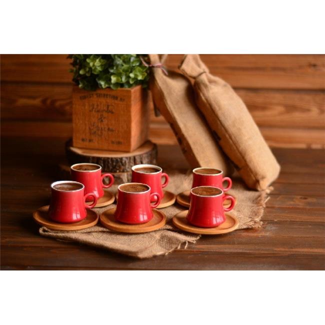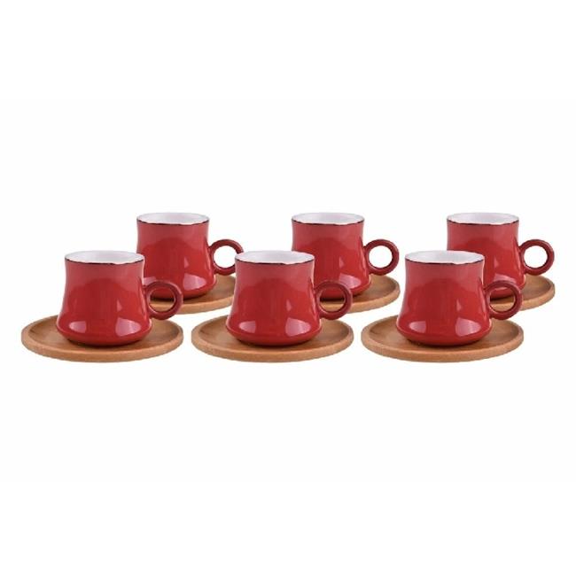 Bambum B0926 Harem Bambu Tabaklı Porselen 6 Kişilik Kahve Fincan Takımı Saray Kırmızı