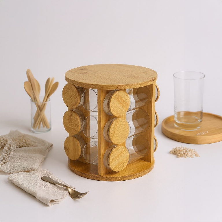 Bambum B6275 Atina Bambu Döner Stantlı Cam Baharatlık 12li