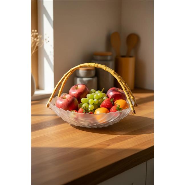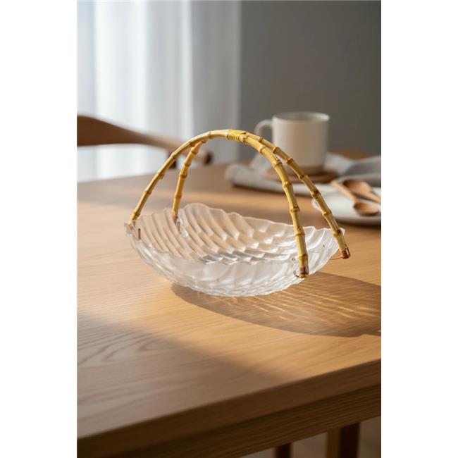 Bambum B6363 Cestino Bambu Kulplu Cam kabartmalı Desenli Dikdörtgen Sunum Tabağı