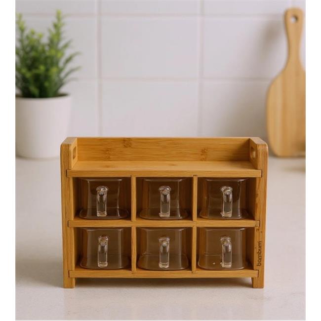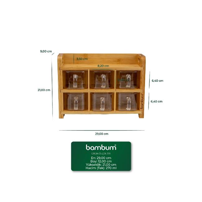 Bambum B6388 Tier Bambu Kapaklı Katlı Cam Baharat Takımı 7 Parça