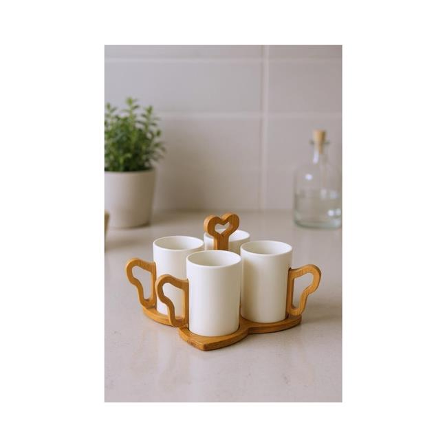 Bambum B6503 Fugu Bambu Standlı Porselen Kupa Seti 4'lü