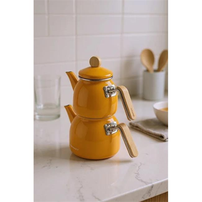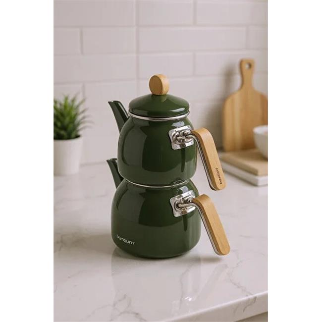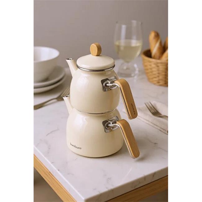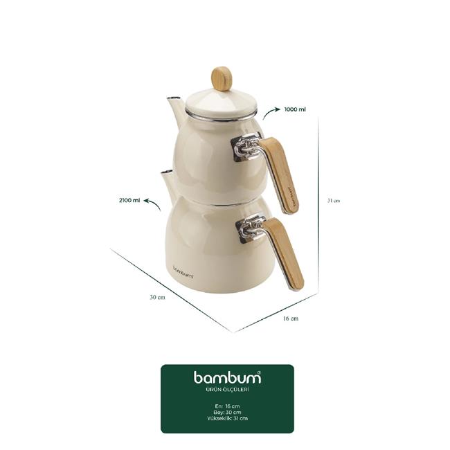 Bambum B6554 Sultan Bambu Kulplu Emaye Çaydanlık Takımı -Çeşit-