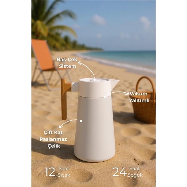 Bambum B6637 North Bambu Saplı Çelik Termos 2 Lt Beyaz