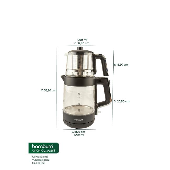 Bambum Safir Cam Hazneli Elektrikli Çay Makinesi