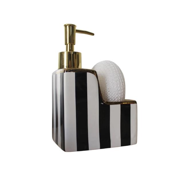 Cemre CMR-2024297 Porselen Siyah Beyaz Çizgili Sıvı Sabunluk