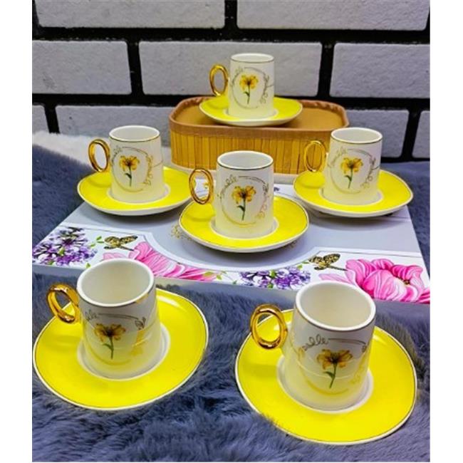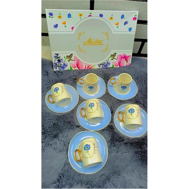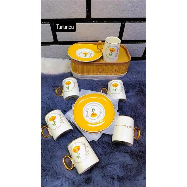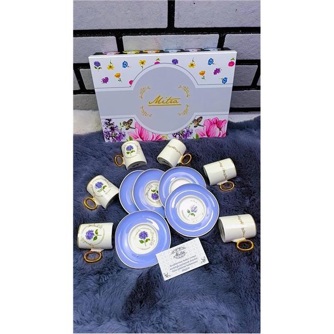Cemre MTR-2024324 Çiçekli Porselen 6 Kişilik Kahve Fincan Takımı