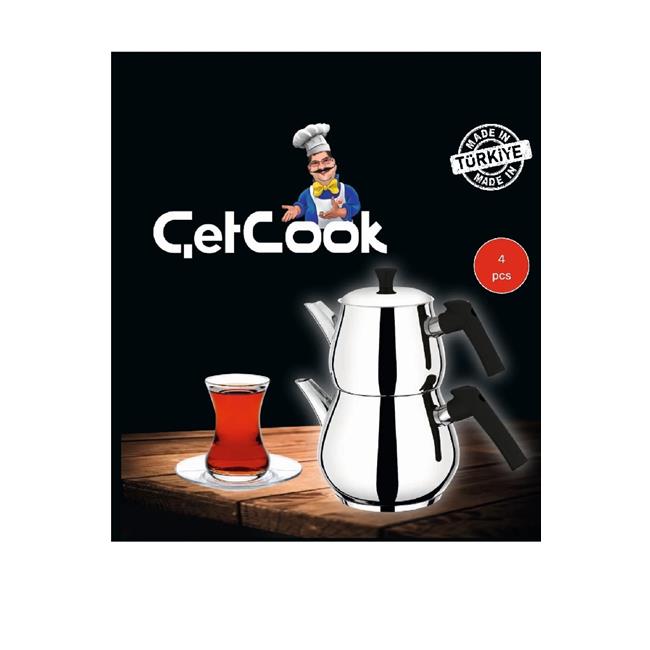 Çetcook Damla Bakalit Kulplu Paslanmaz Çelik Çaydanlık Takımı Aile Boy