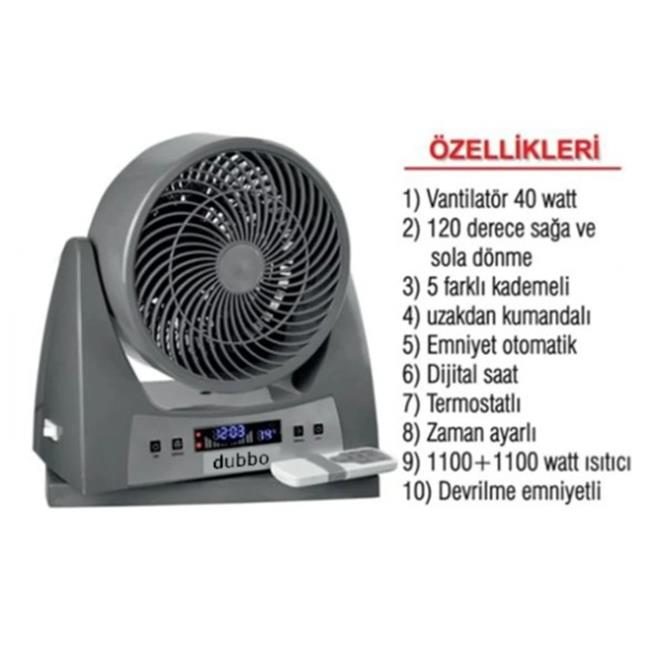 Dubbo 3414 Dönerli Uzakdan Kumandalı Dijital Masa Üstü Sıcak Soğuk Fanlı Isıtıcı