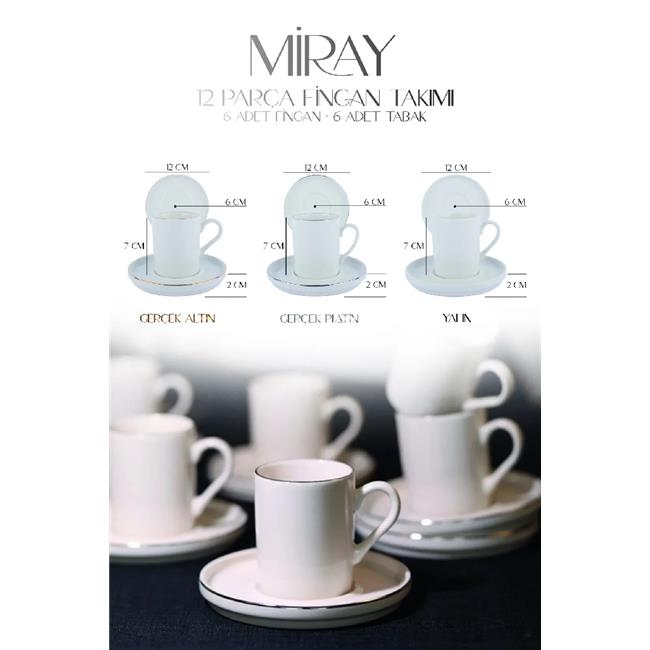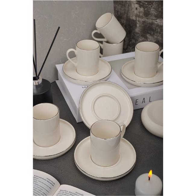 Farika Miray Platin Yaldız Porselen 6 Kişilik Kahve Fincan Takımı
