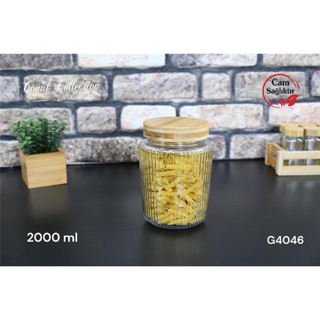 Gönül G4046 Bambu Kapaklı Cam Kavanoz Saklama Kabı 1950ml -Koli Satış 6 Adet-