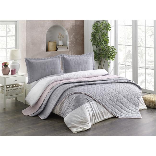 Kristal Casual Çift Taraflı Nevresim Takımı 7 Parça Gelin Seti Koyu Gri - Gül Kurusu