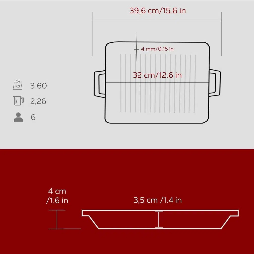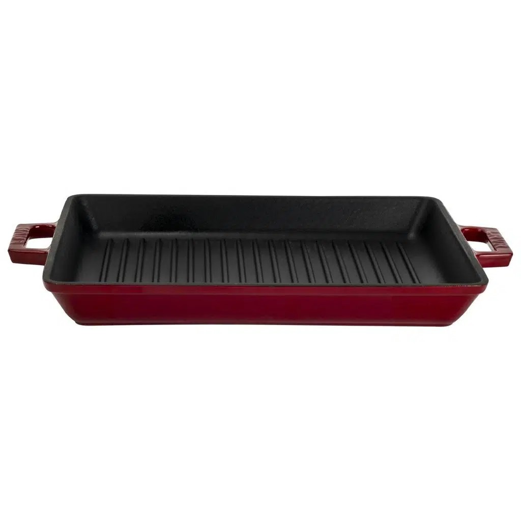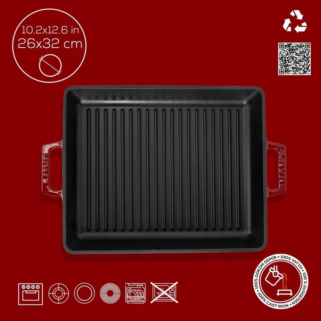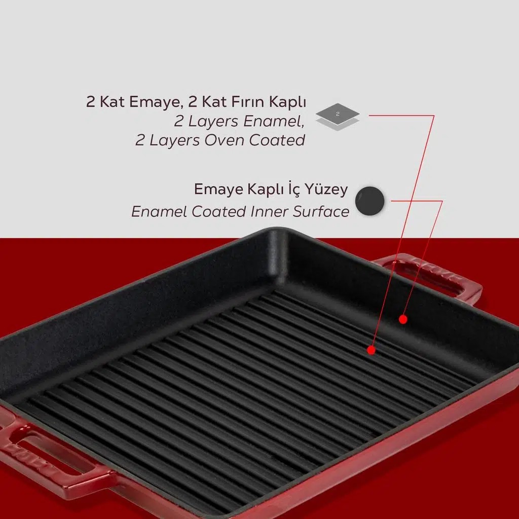 Lava Döküm Izgara Çift Kulplu Dikdörtgen Tava 26x32 Cm Bordo