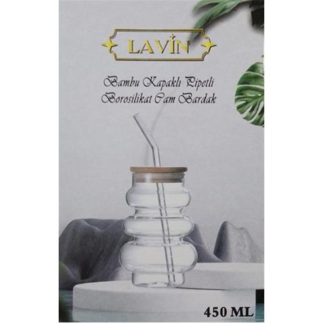 Lavin 47197 Bambu Kapaklı Pipetli Borosilikat Cam Bardak 450ml
