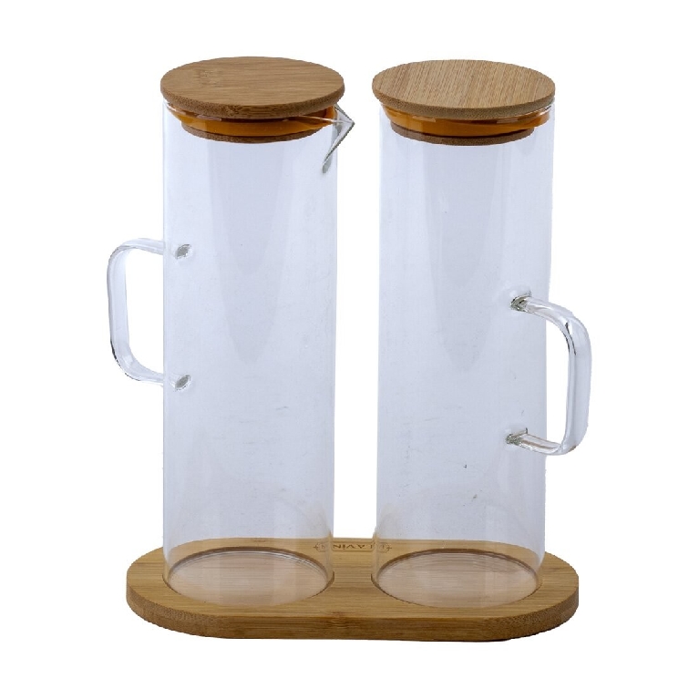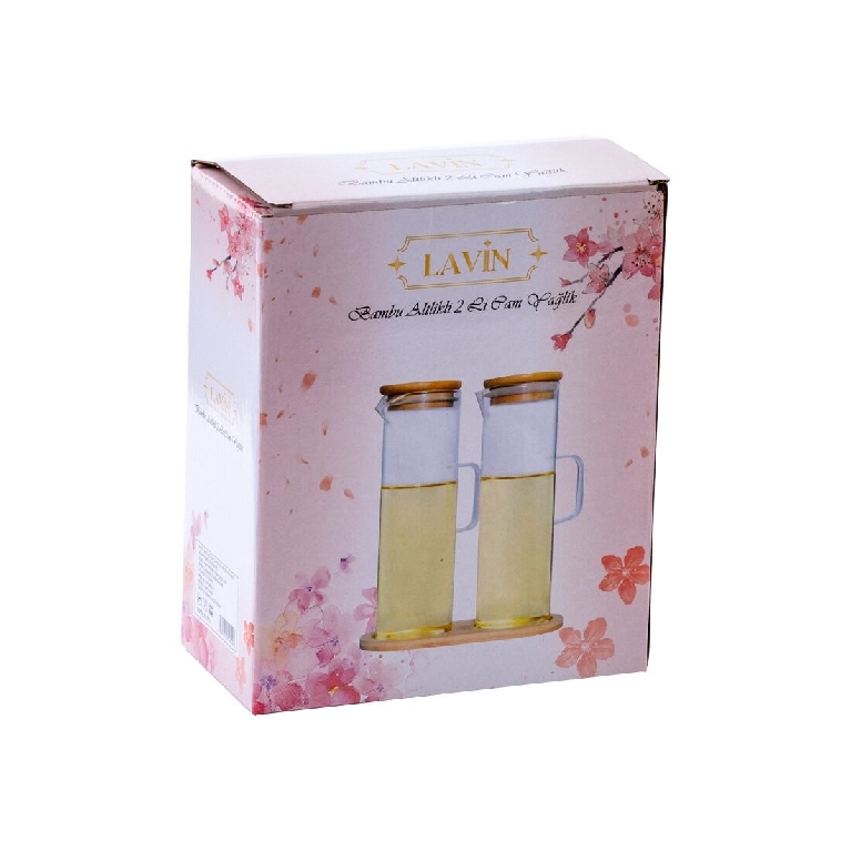 Lavin 47371 Bambu Kapaklı Standlı Cam Yağlık & Sirkelik 2li