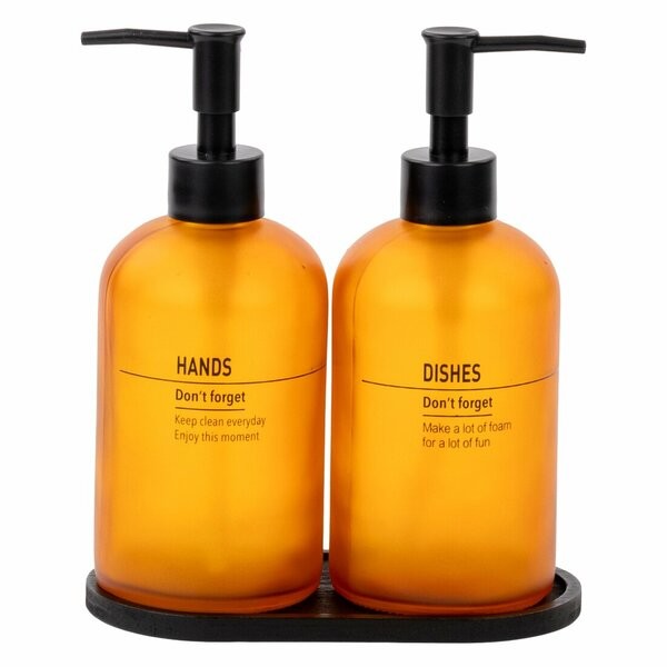 Lavin 47876 Bambu Altlıklı Sıvı Sabunluk Seti Cam 2 Li