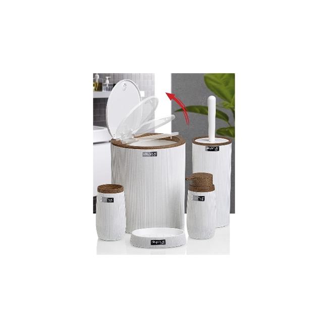 Okyanus 478-3-B Bella Çizgili Akrilik 5 Parça Banyo Seti Click Kapak Ahşap-Beyaz