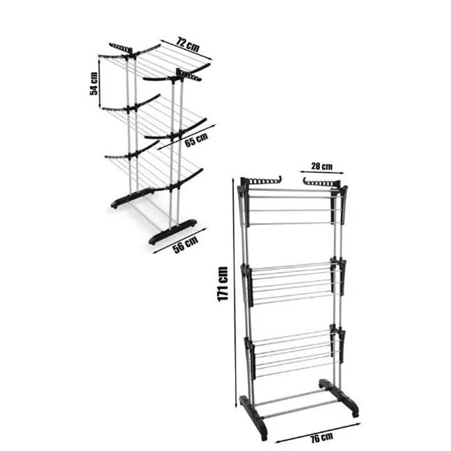 Açılır kapanır kanatları ile çamaşırların dikey olarak asılmasını sağlar.