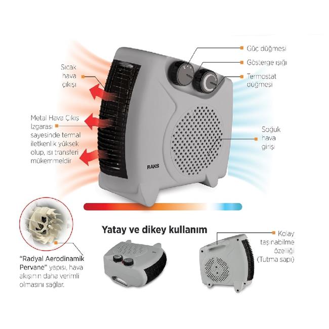 Raks PF 20 Silver Elektrikli Fanlı Isıtıcı Samyeli 2000W