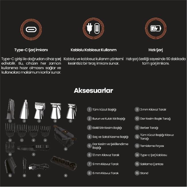 Relux RPG7500 Groomexpert 15’i 1 Arada Erkek Bakım Kiti
