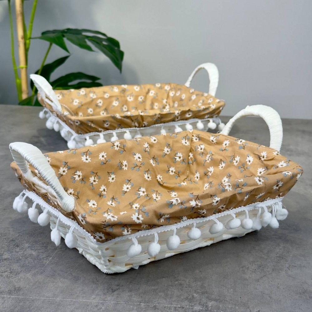 Sever Home BJ71354 Plastik Rattan Ponponlu Dikdörtgen Ekmek Sepeti