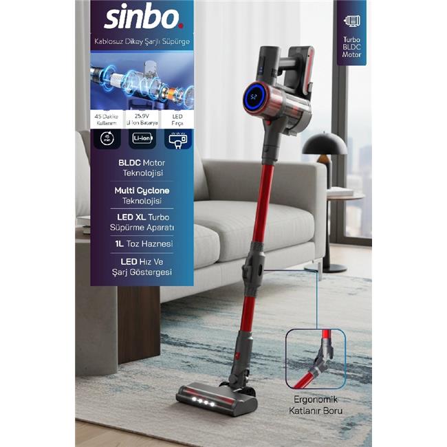 Sinbo SVC-8622 Şarjlı Aydınlatmalı Katlanabilir Dikey Elektrikli Süpürge