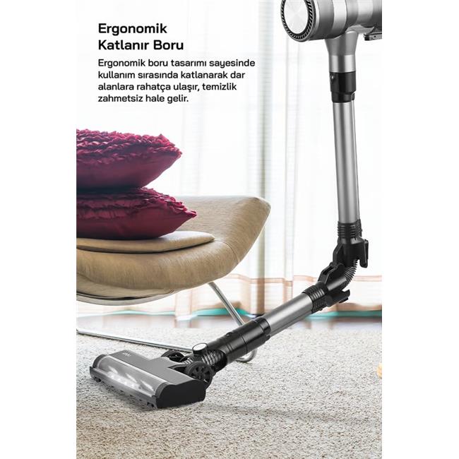 Kullanım Kolaylığı: Ergonomik katlanır boru sayesinde koltuk altı, dar alanlar ve yüksek yerlerde pratik temizlik