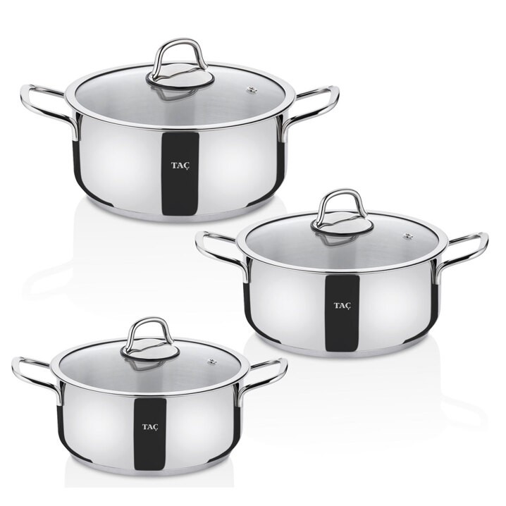 Taç 8095 Bengü Pro Cam Kapaklı 6 Parça Tencere Seti 16/18/20 cm
