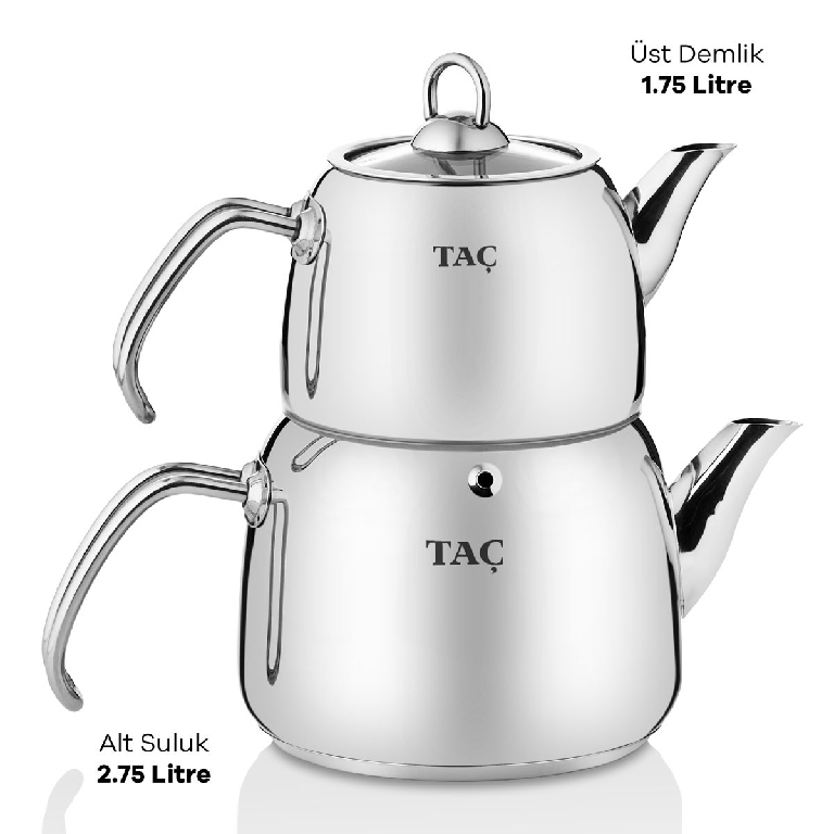 Taç Panda 4 Parça Paslanmaz Çelik Çaydanlık Takımı Maxi Boy