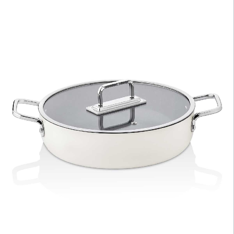 Taç Sera Feel Seramik Yanmaz Yapışmaz Basık Tencere Beyaz 28 cm
