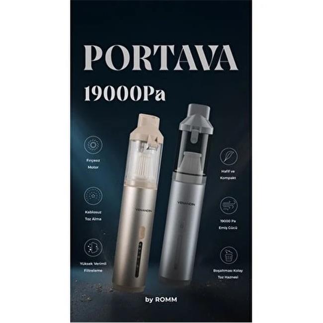 Şarj Girişi: USB Type-C Kutu İçeriği PORTAVA Kablosuz Şarjlı Süpürge Uzun Emiş Nozulu Kısa Ağızlık Fırça Başlık Kombinasyon Başlık Filtre Kartuşu USB Type-C Şarj Kablosu Kullanım Kılavuzu
